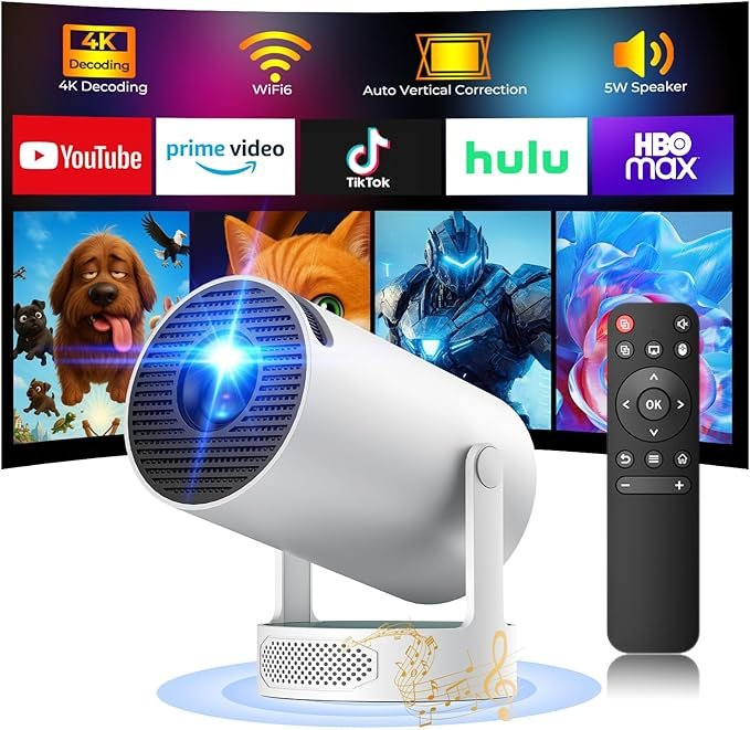 Mini Projector with WiFi 6 and Bluetooth, 4K Supported Portable Projector, 300 ANSI Lumens Smart Projector with 270° Rotation, Auto Keystone & 5W Soundbase Speaker for Bedroom, Home & Outdoor