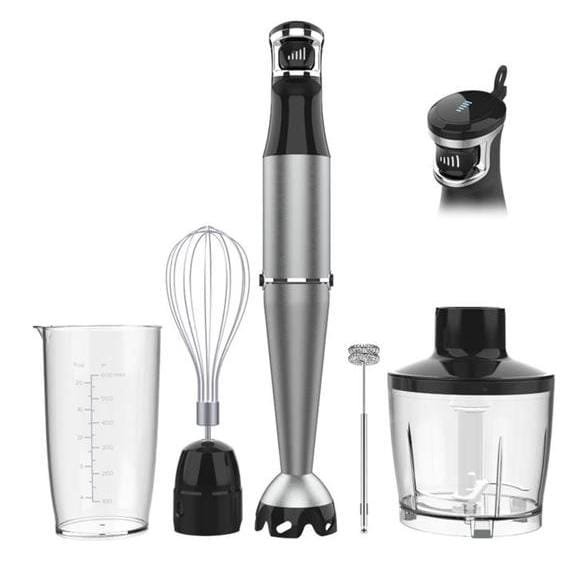 Blending Stick, 500ml Food Chopper, Stainless Steel Whisk, Milk Frother, and a 600ml BPA-Free Mixing Beaker.
